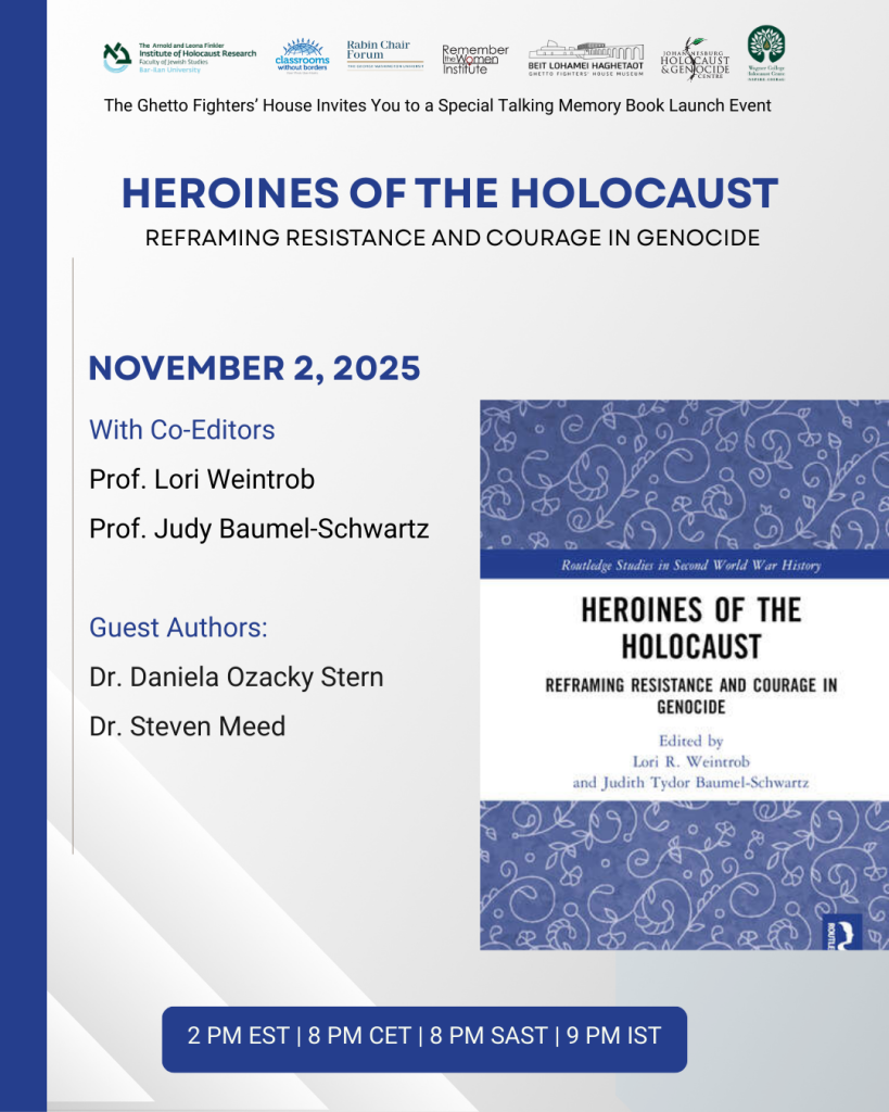 The Ghetto Fighters’ House invites you to a special online book launch of Heroines of the Holocaust: Reframing Resistance and Courage in Genocide.