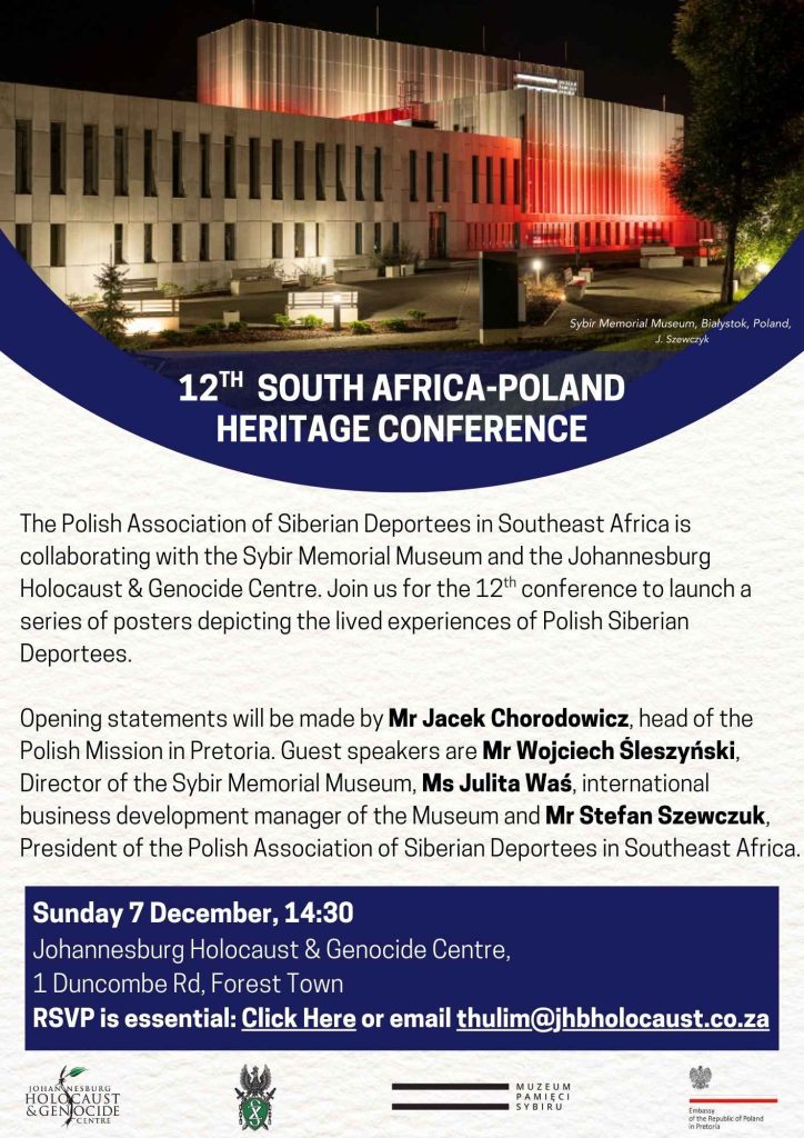 The Polish Association of Siberian Deportees in Southeast Africa is collaborating with the Sybir Memorial Museum and the Johannesburg Holocaust & Genocide Centre. Join us for the 12th conference to launch a series of posters depicting the lived experiences of Polish Siberian Deportees.