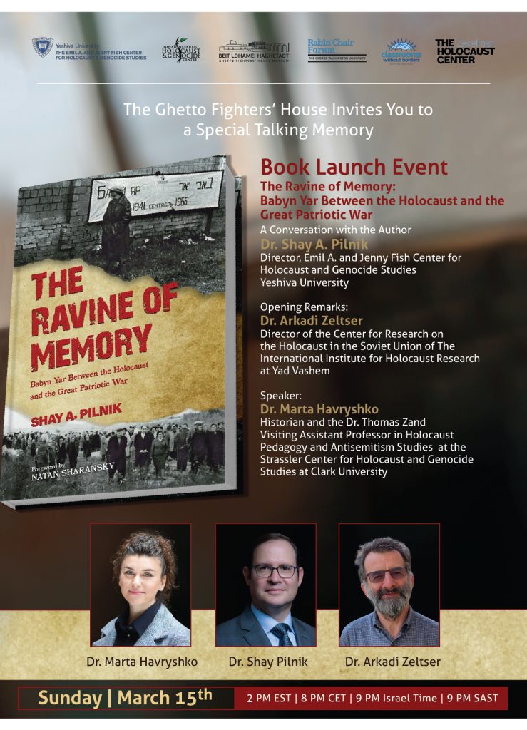The Ghetto Fighters’ House invites you to a special Talking Memory program marking the launch of The Ravine of Memory: Babyn Yar Between the Holocaust and the Great Patriotic War.